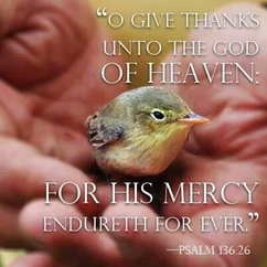 Psalm 136: O give thanks to the Lord for he is good, for his great love is without end. It was his wisdom which made the skies, for his great love is without end. It was he who made the sun, moon and stars, for his great love is without end. It was he who rescued and protected his people Israel, for his great love is without end. He gives food to all living things, for his great love is without end. To the God of heaven give thanks, for his great love is without end.